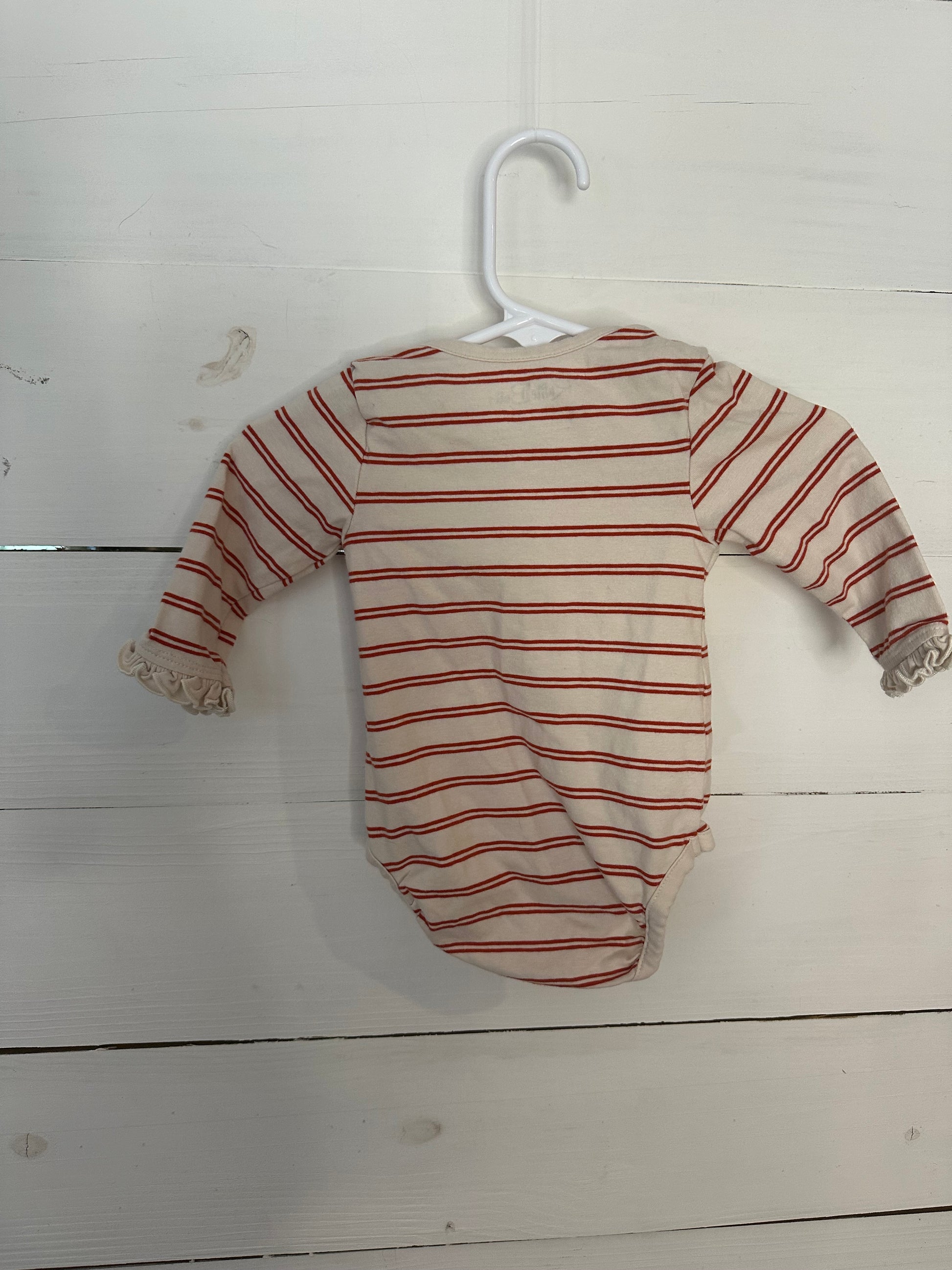 0-3M - Ruffle Butts Red Striped Longsleeve Onesie