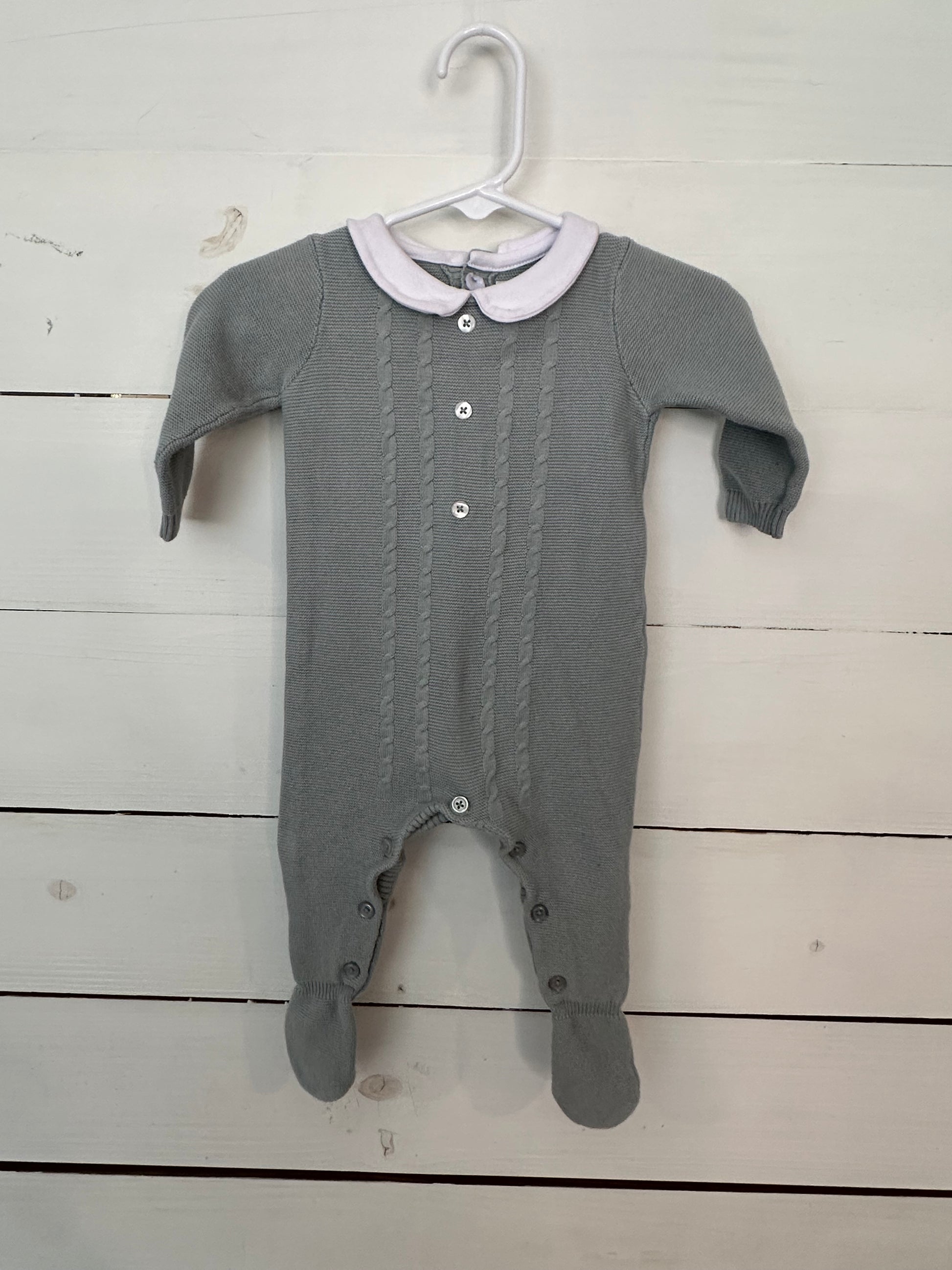 0-6m - Edgehill Collection Baby Blue Gown with Pocket and Swiss Dot Collar