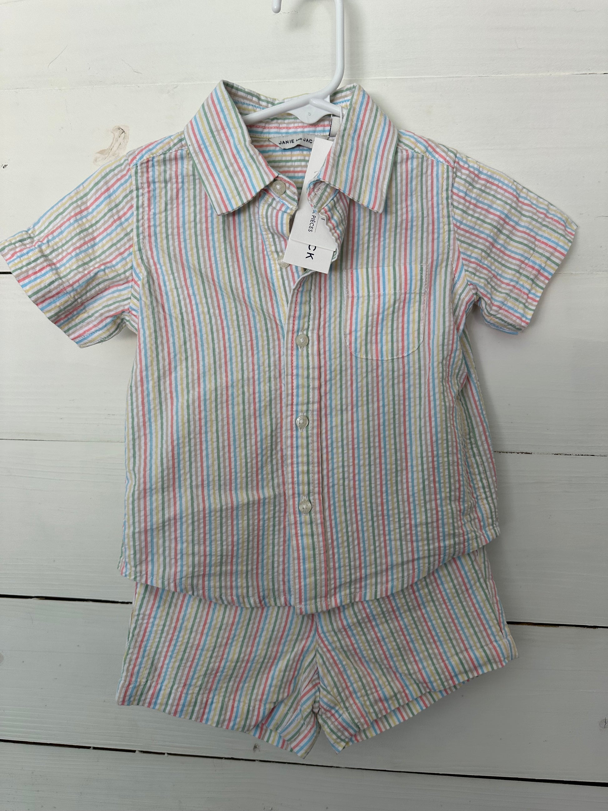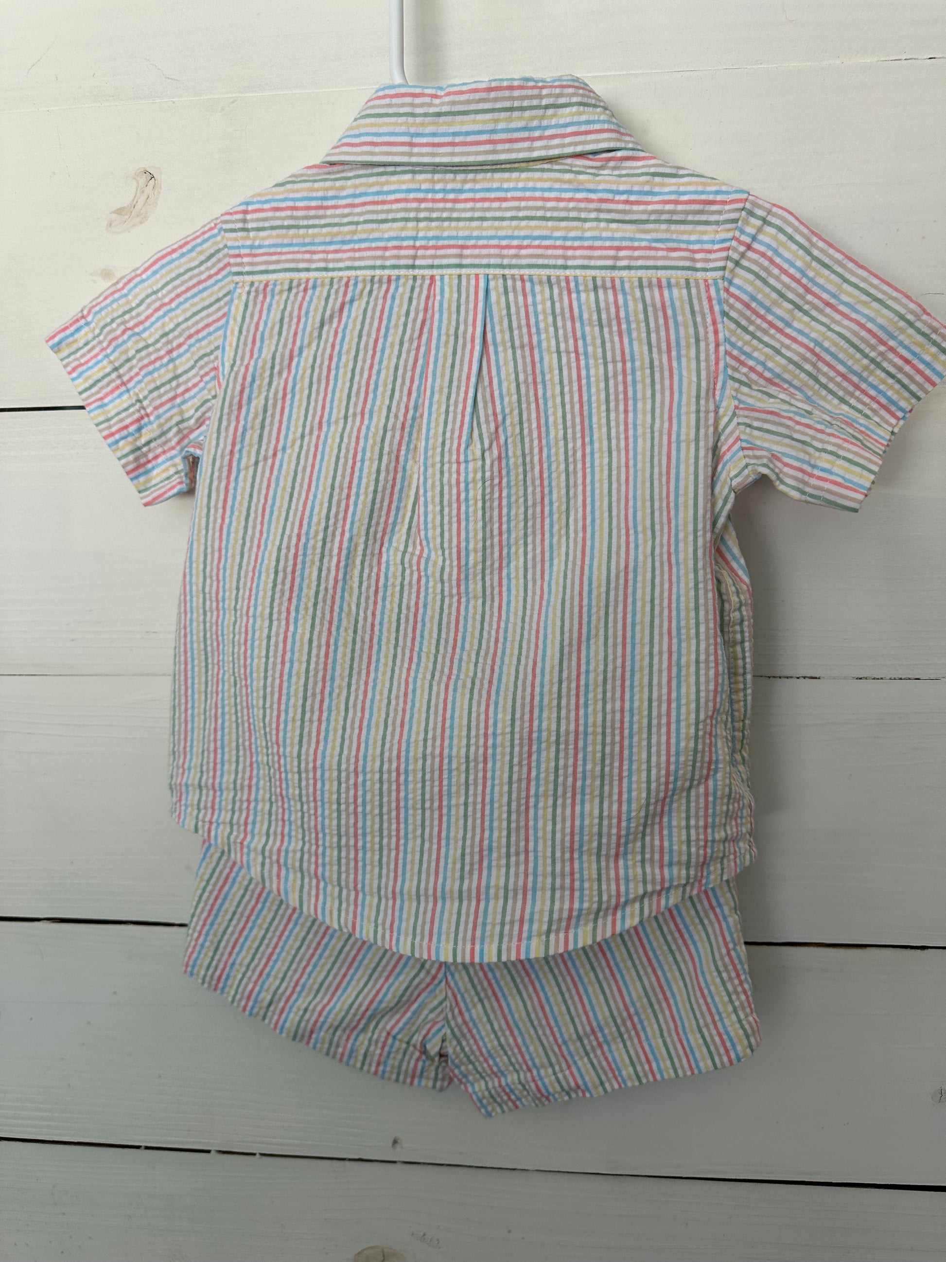 12/18m Janie & Jack - Seer sucker summer pastel striped 2 piece short set - button up collared shirt