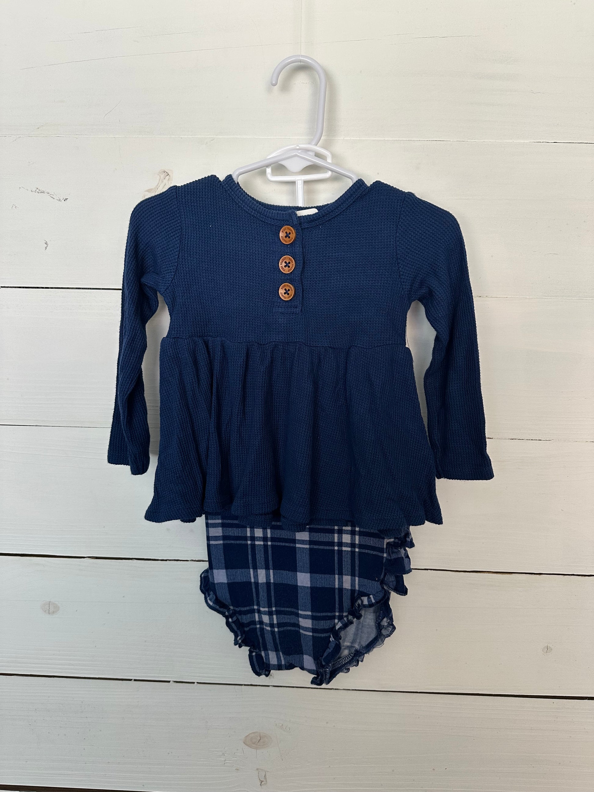12/18M - Posh Peanut Navy Blue and Plaid Girls 2 Piece Set