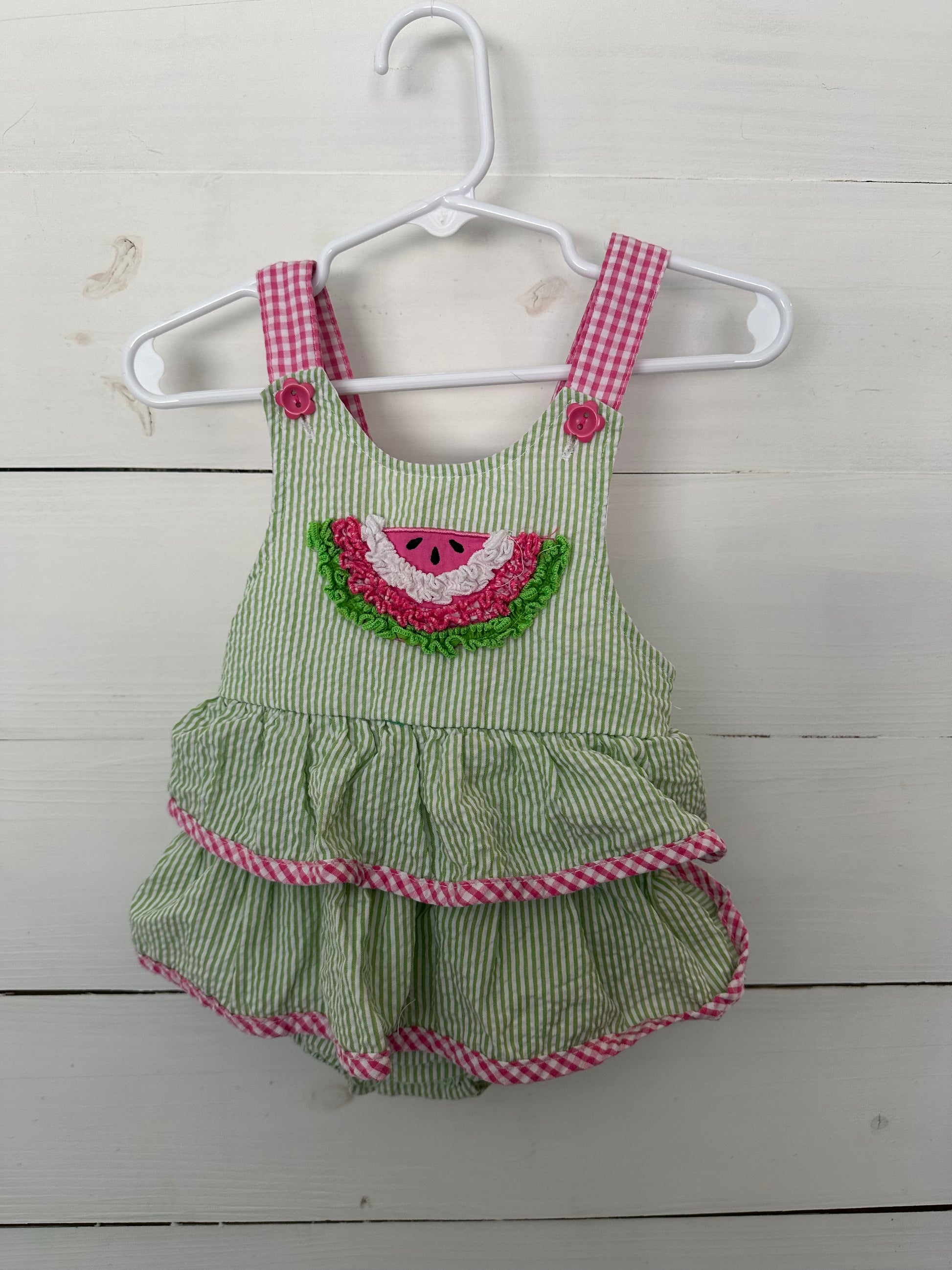 12m - Green Seersucker & Pink Gingham Watermelon Bubble