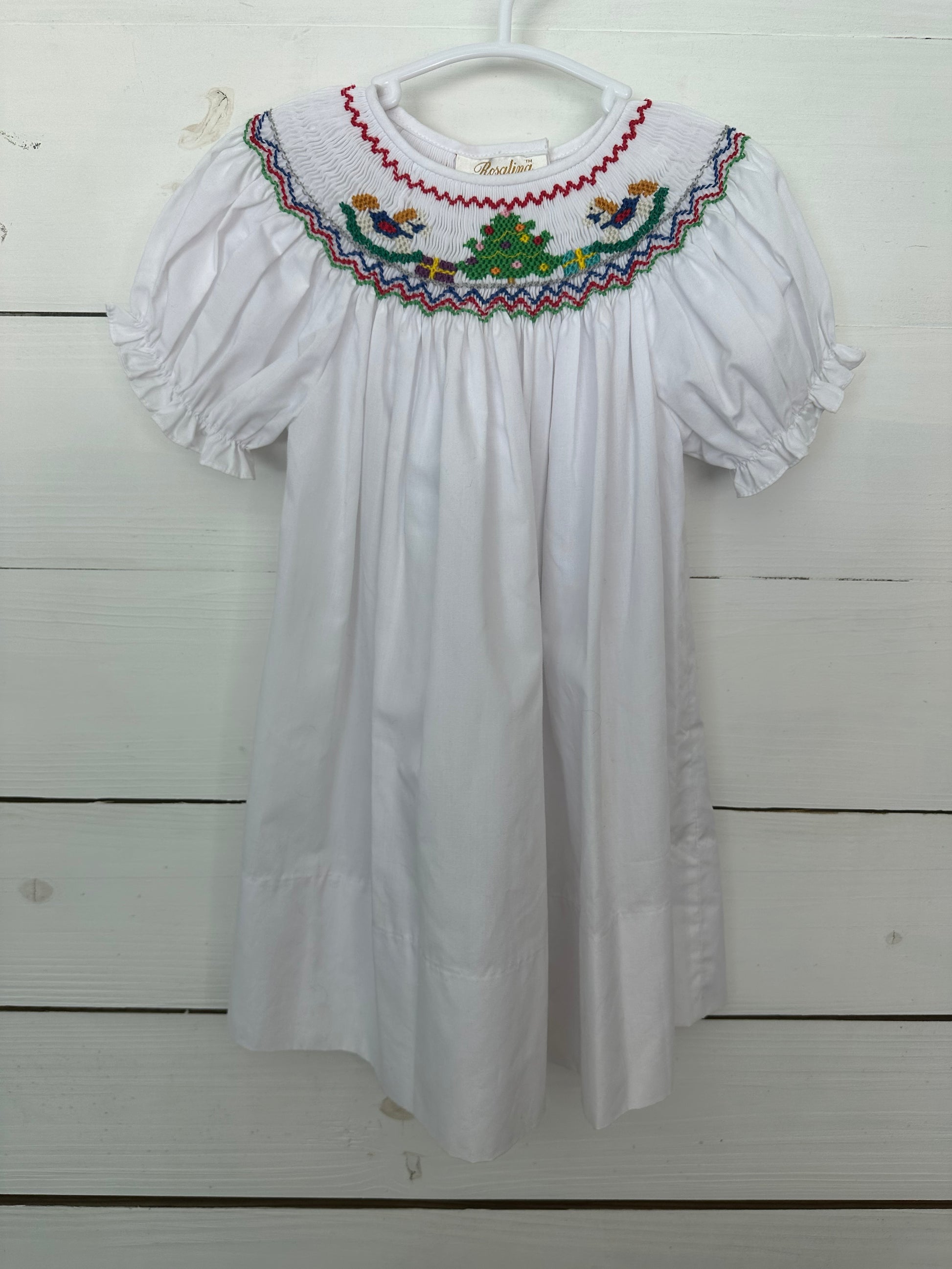 12M- Rosaline Collection - White Smocked Christmas Dress