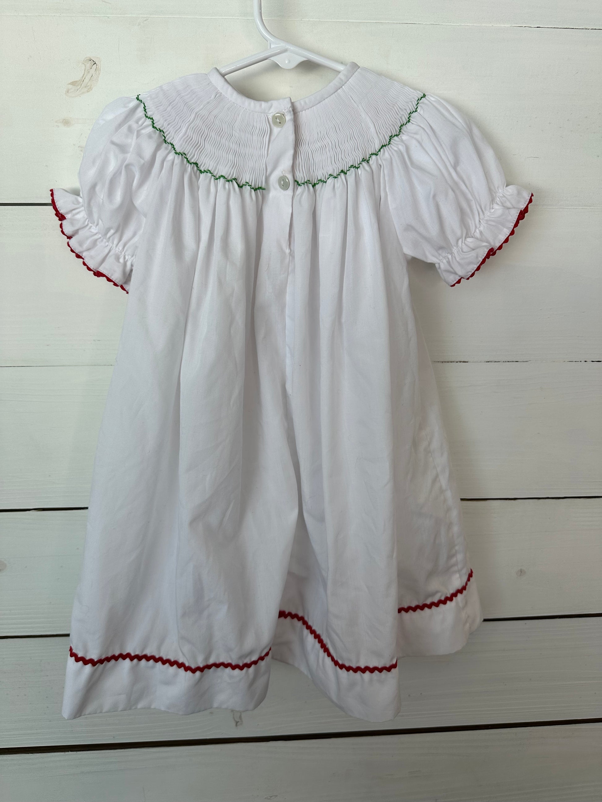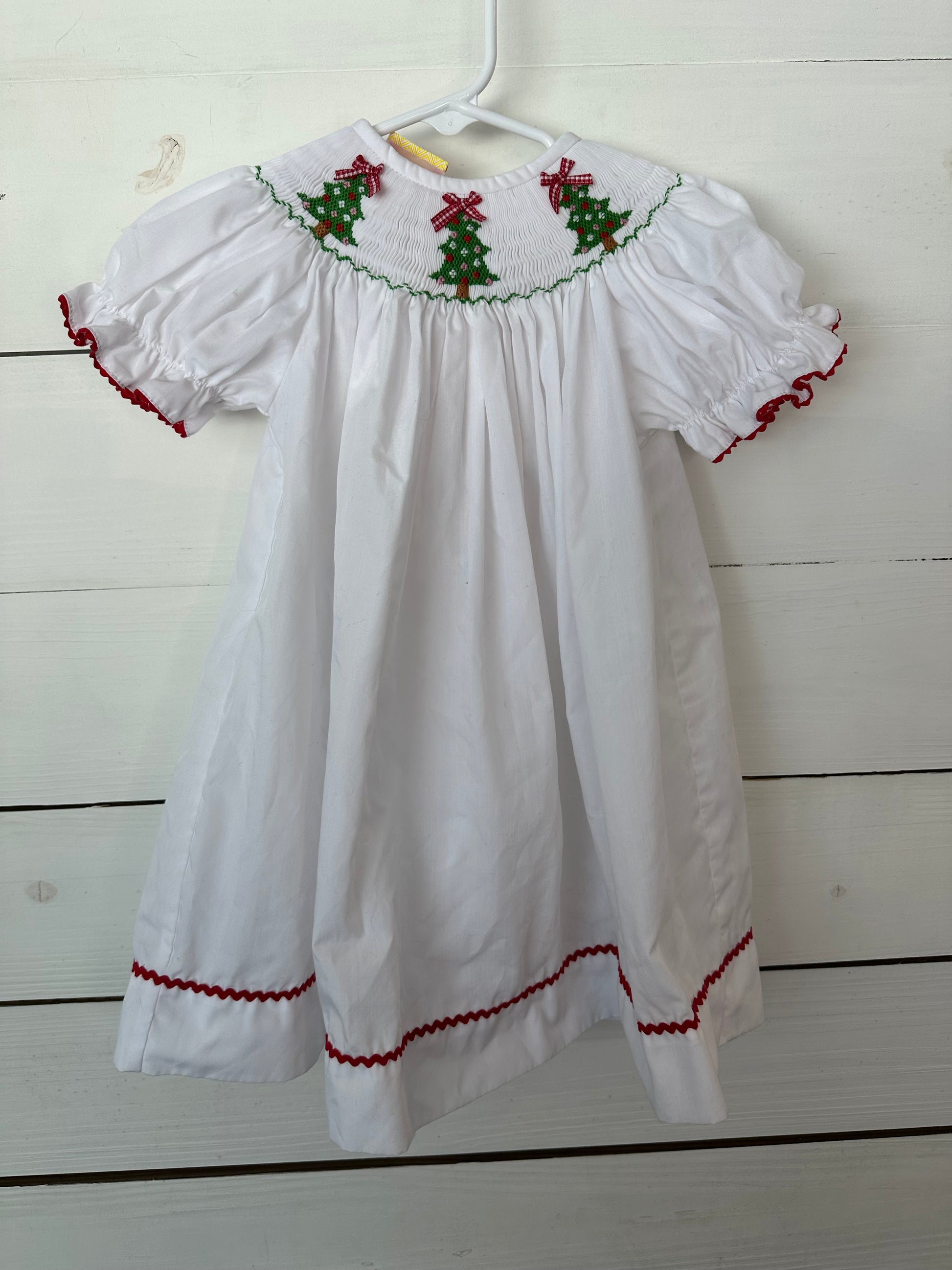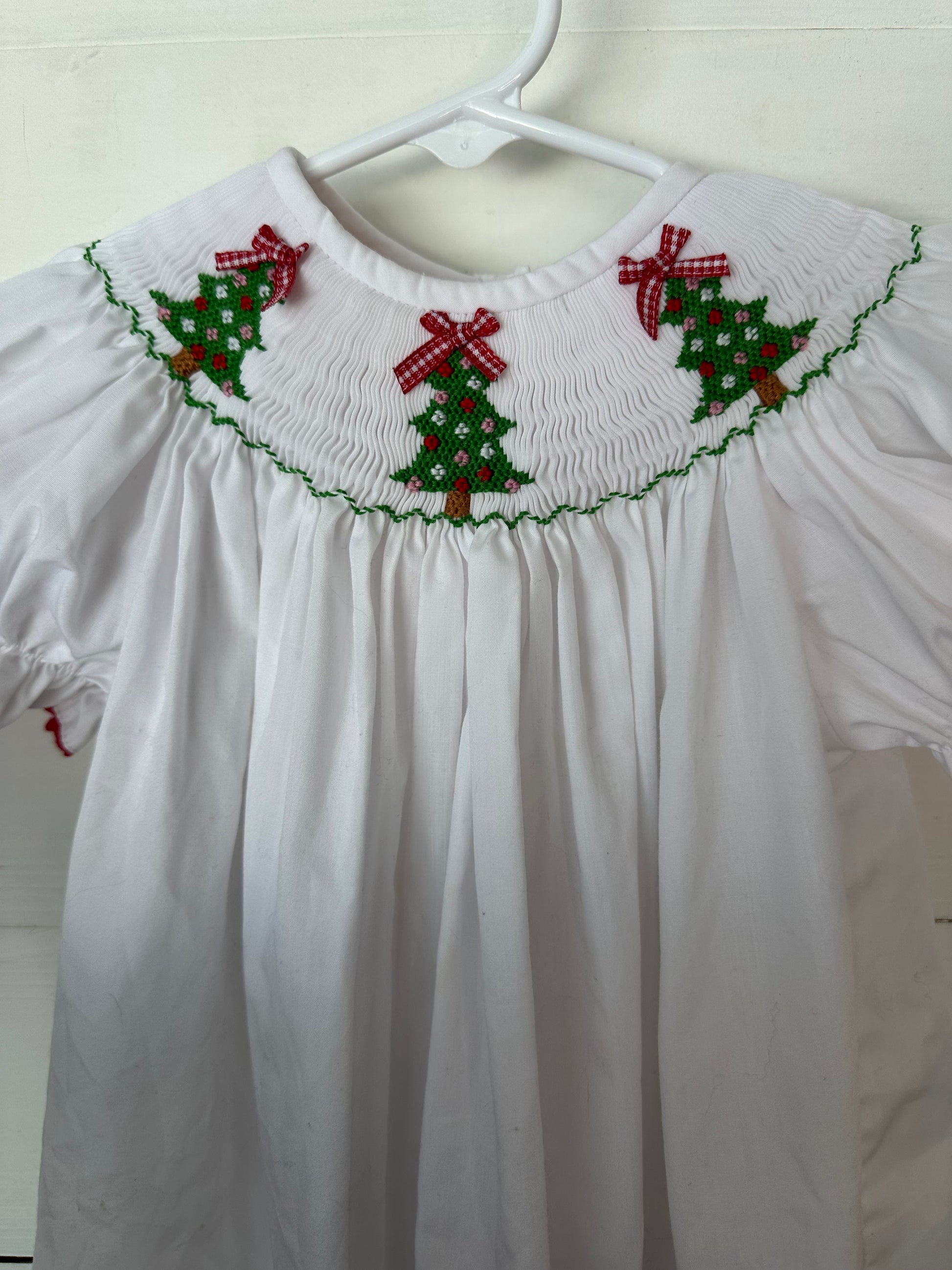 18m - Southern Sunshine Kids - White Bishop Dress with Smocked Christmas Tree's