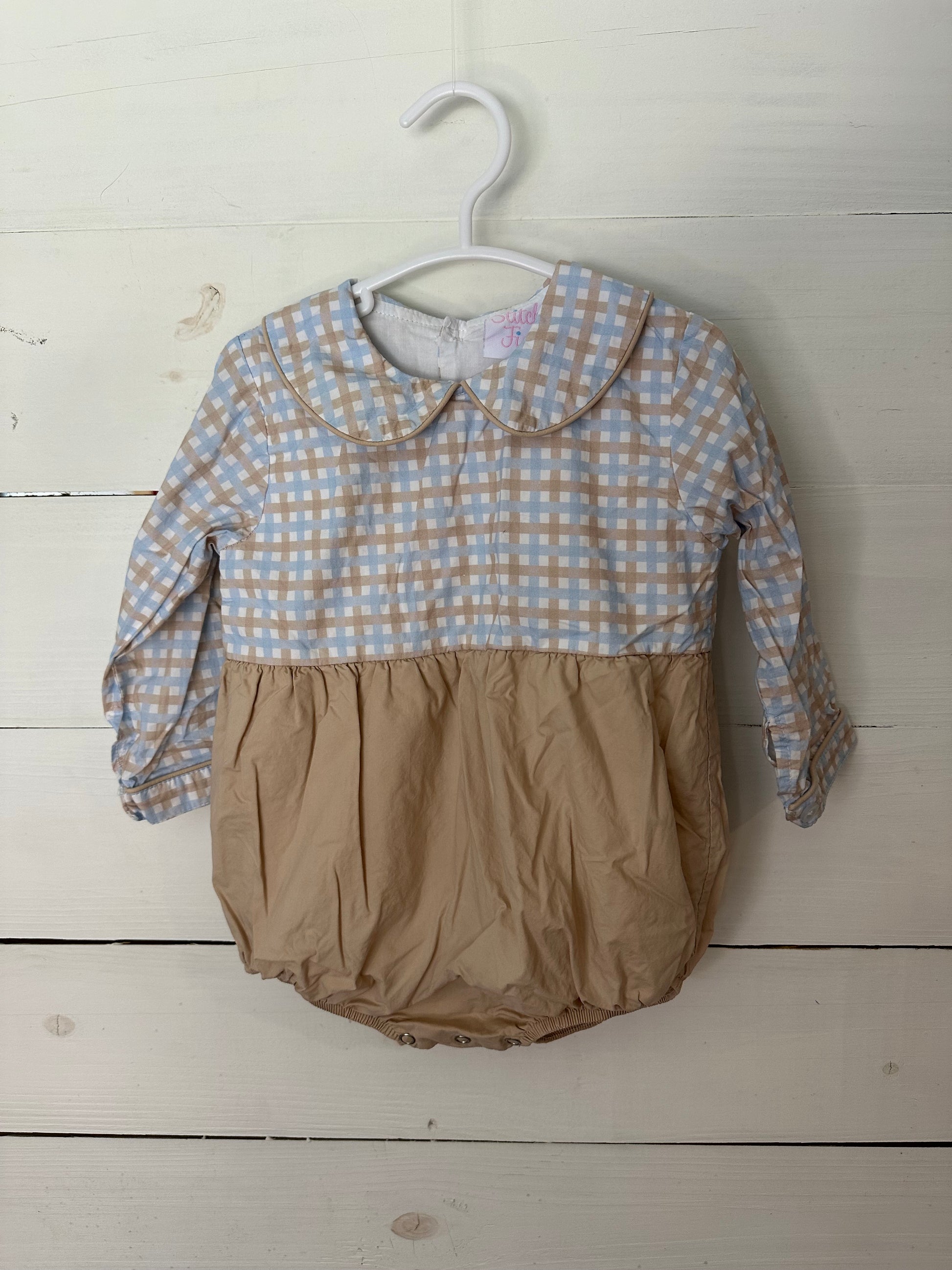 18M - Stitchy Fish Tan & Baby Blue Longsleeve Bubble