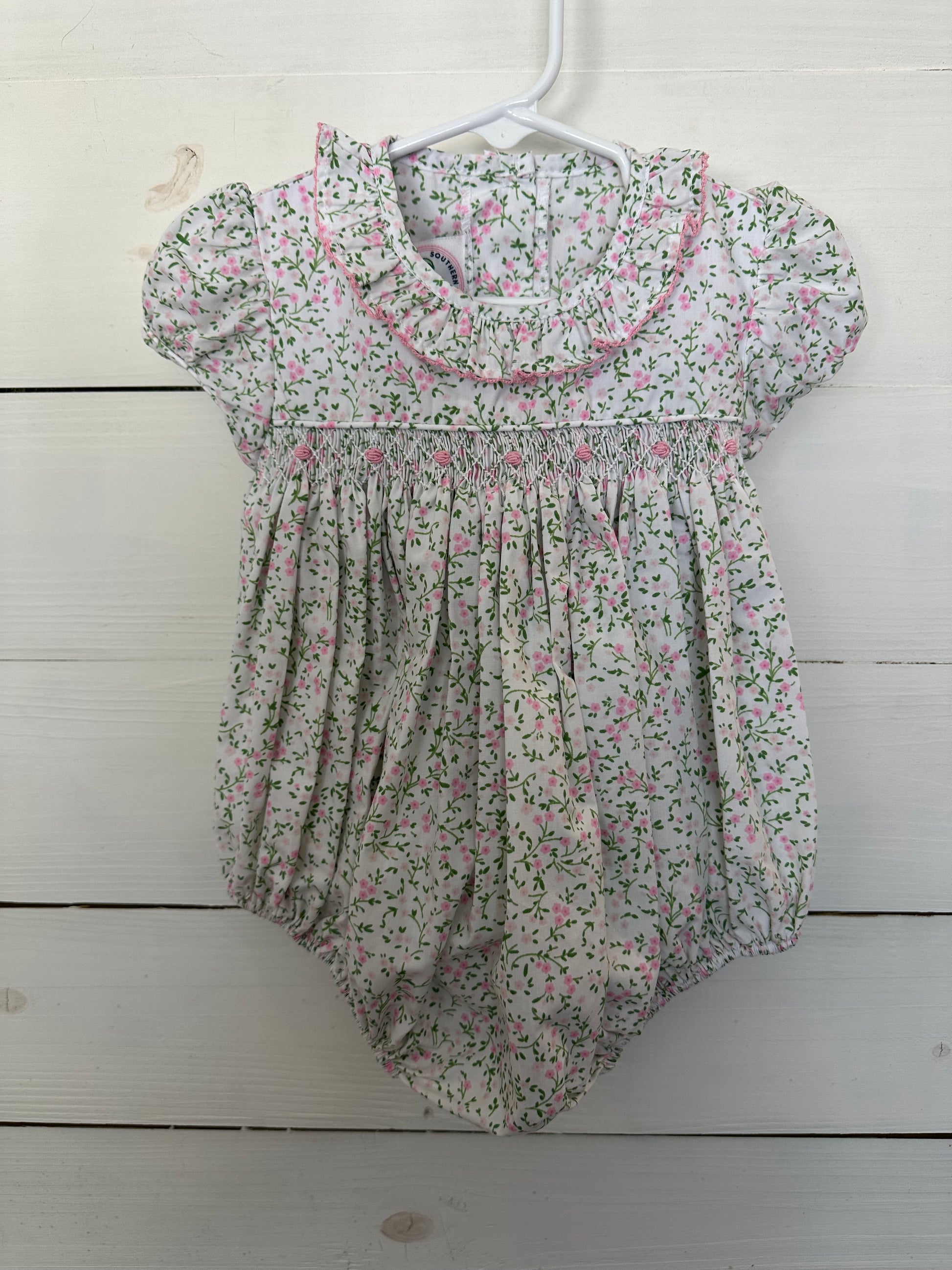 24/2T - Southern Smocked Company Pink Floral Smocked Bubble