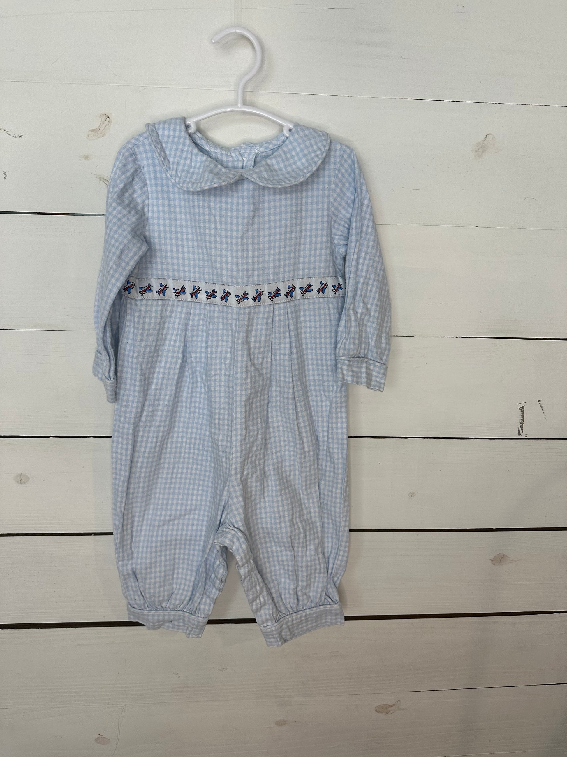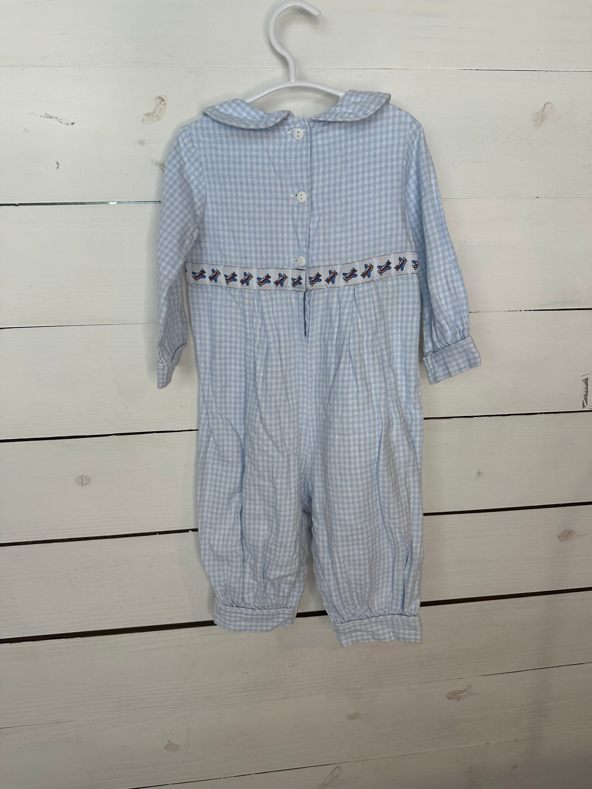 2T - Lime Green Baby Blue Gingham Romper with Airplanes - Thin Flannel Material