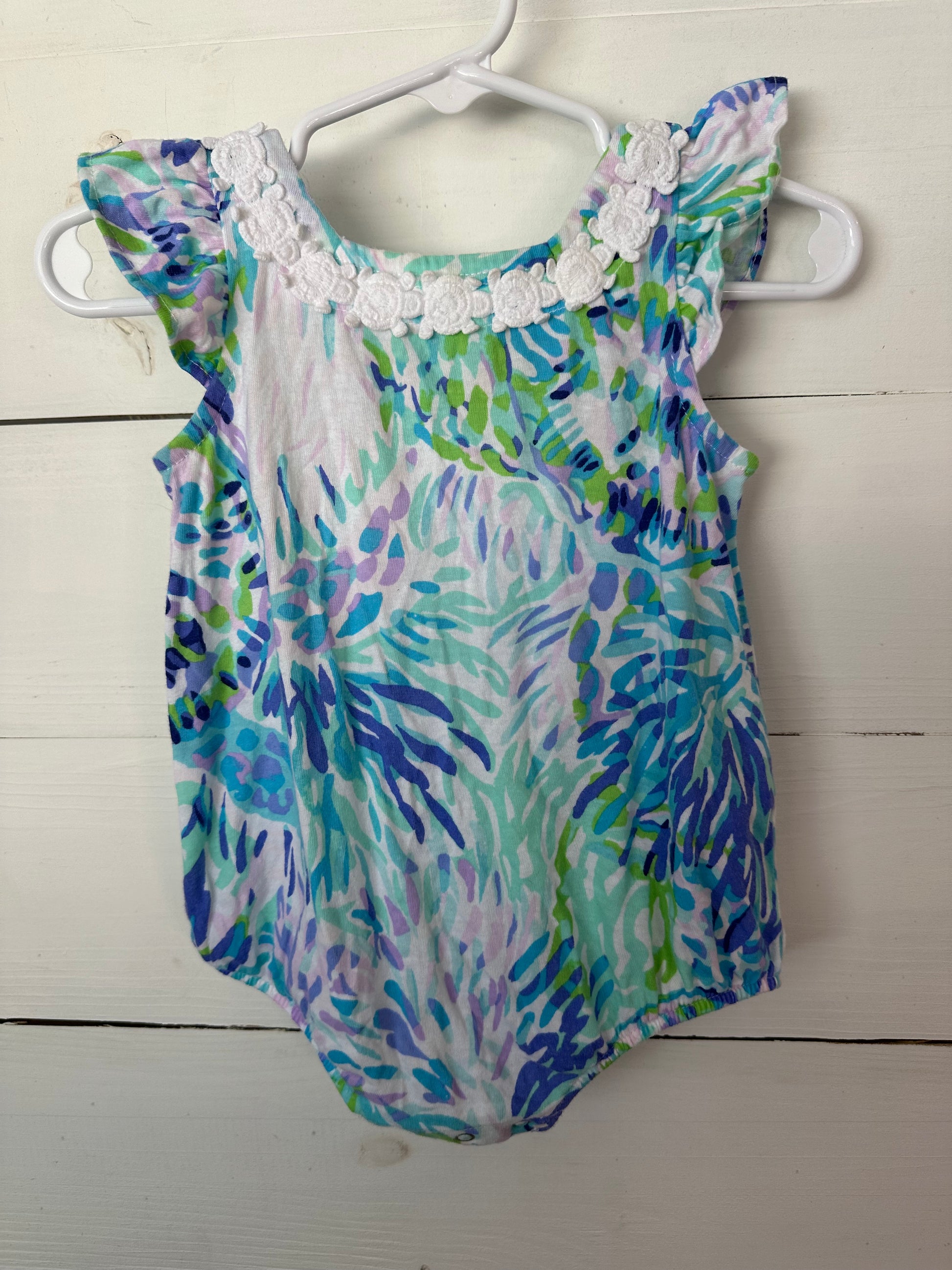 3-6M - Lilly Pulitzer Purple and Green Cotton Bubble with Turtle Details