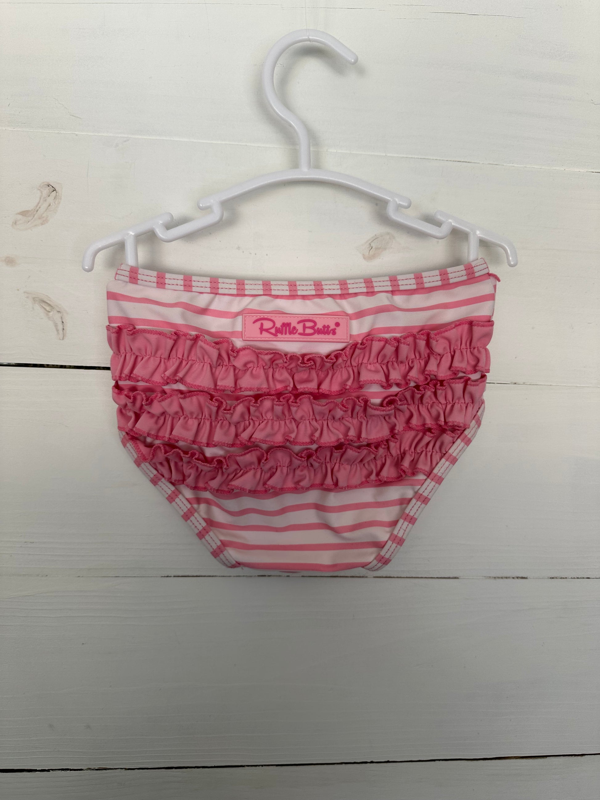 3T- Ruffle Butts Girls Long Sleeve 2 Piece Swim Pink Stripes and Flowers