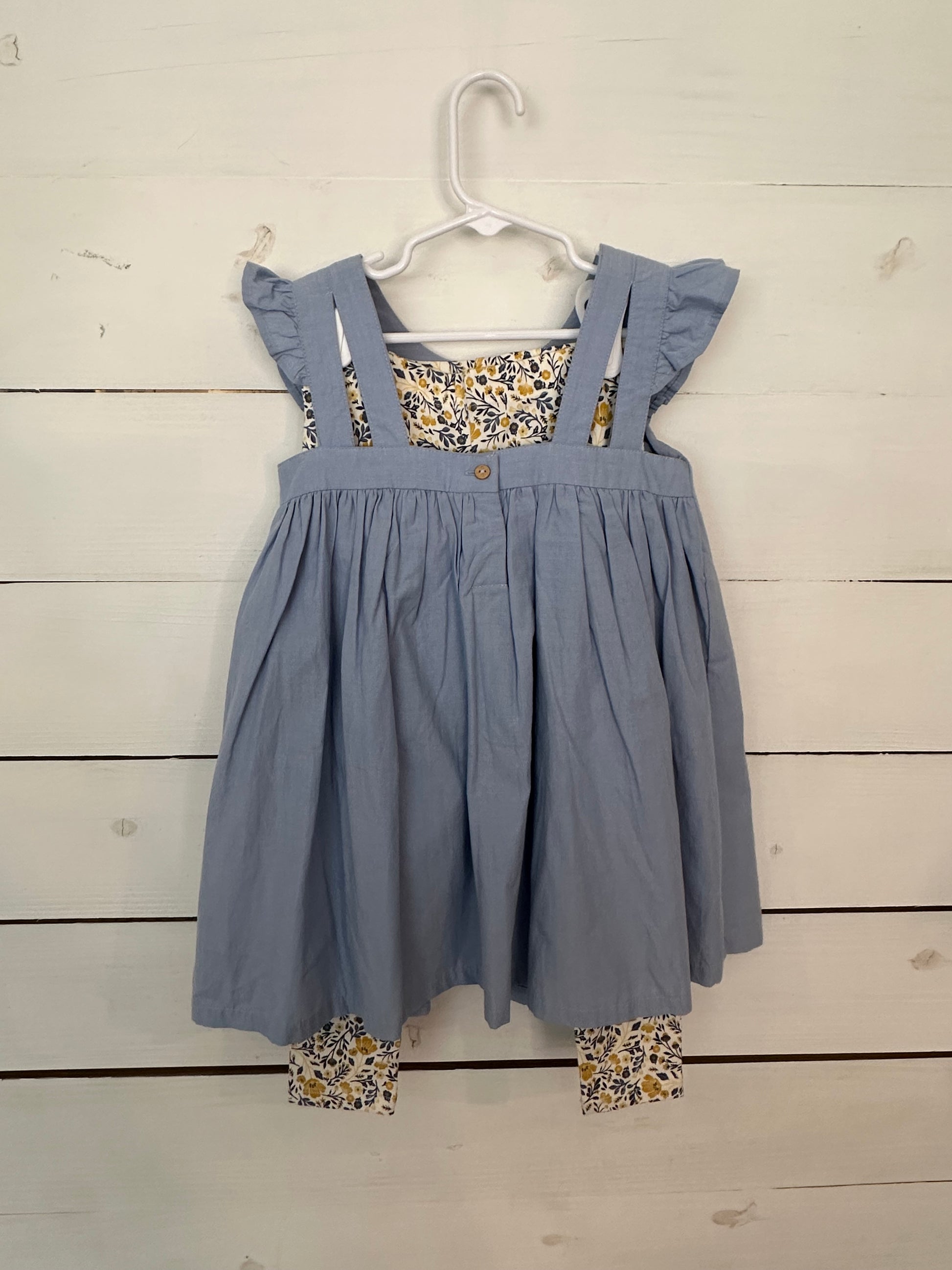4T - Blue Tunic with embroidered flowers and matching floral leggings