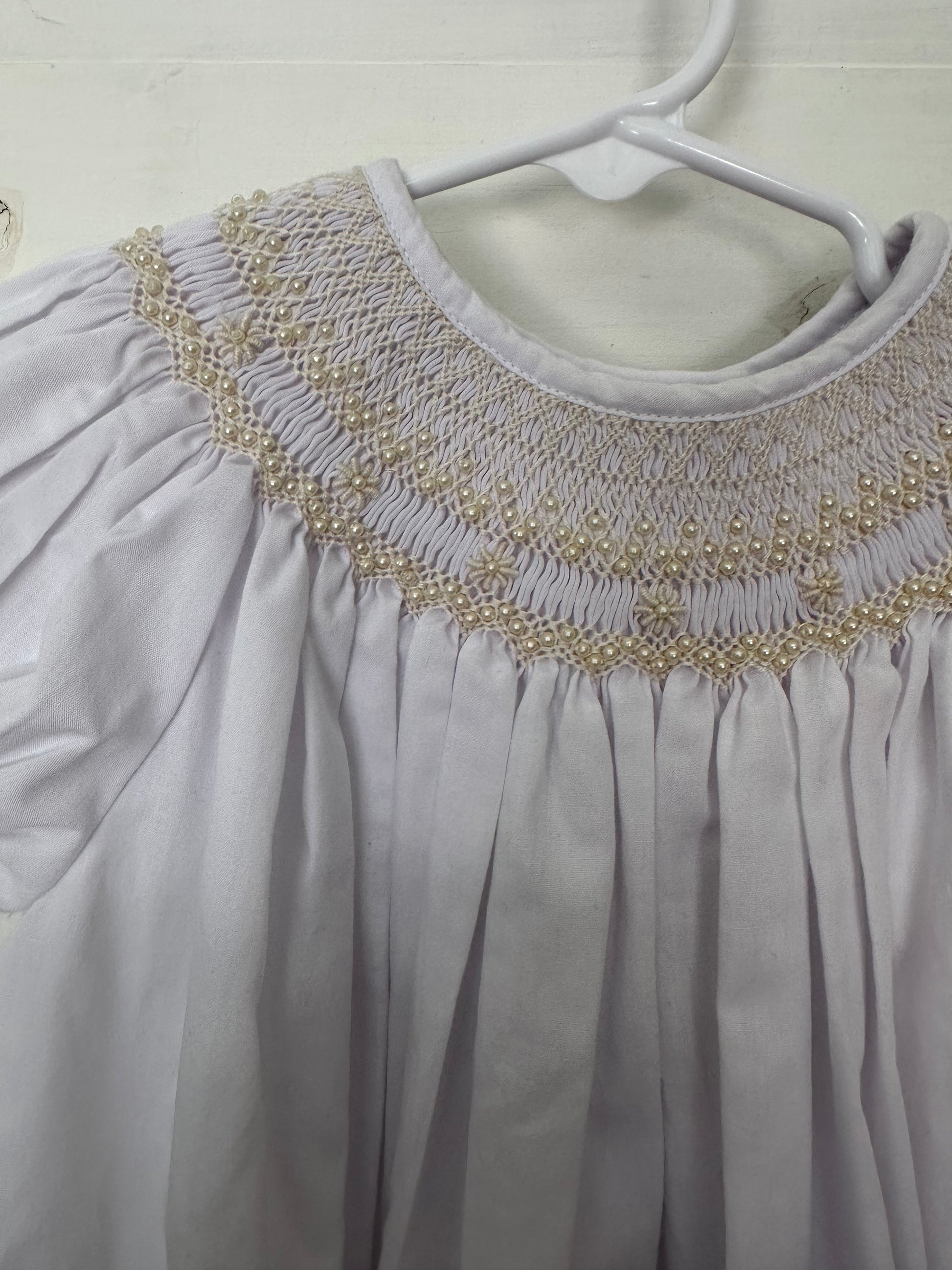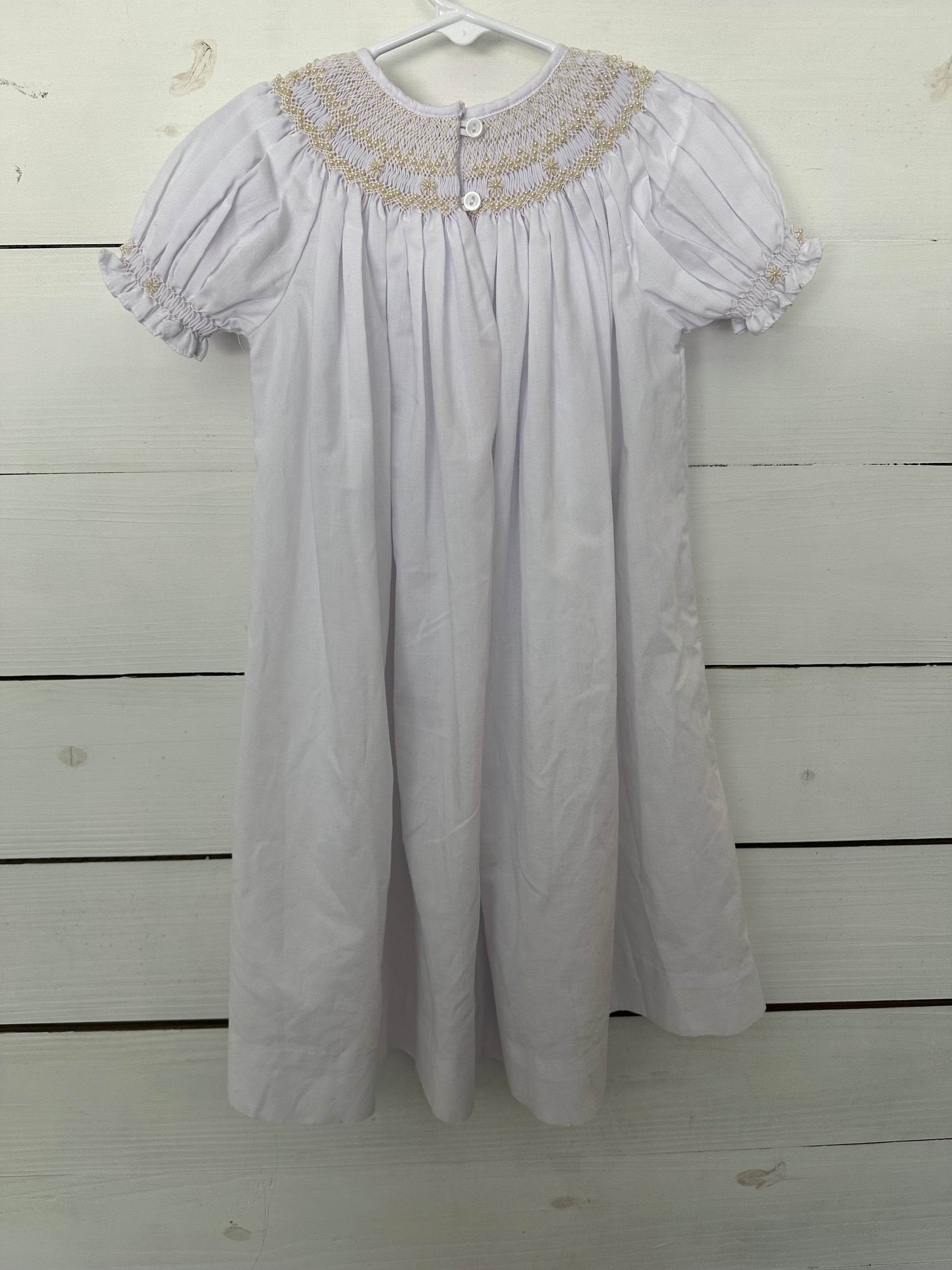 4T - Royal Child - White Bishop Dress with Smocked Pearl Details