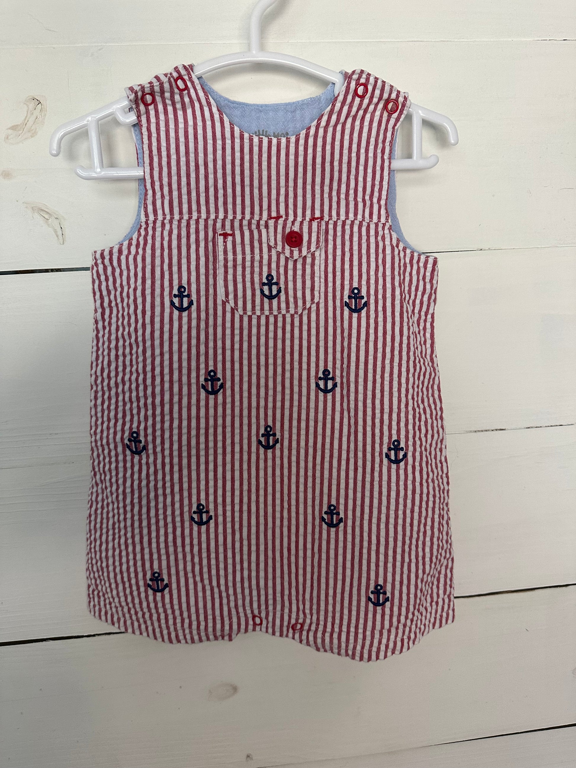 6M - Little Me Red Seersucker Jon Jon with Anchors