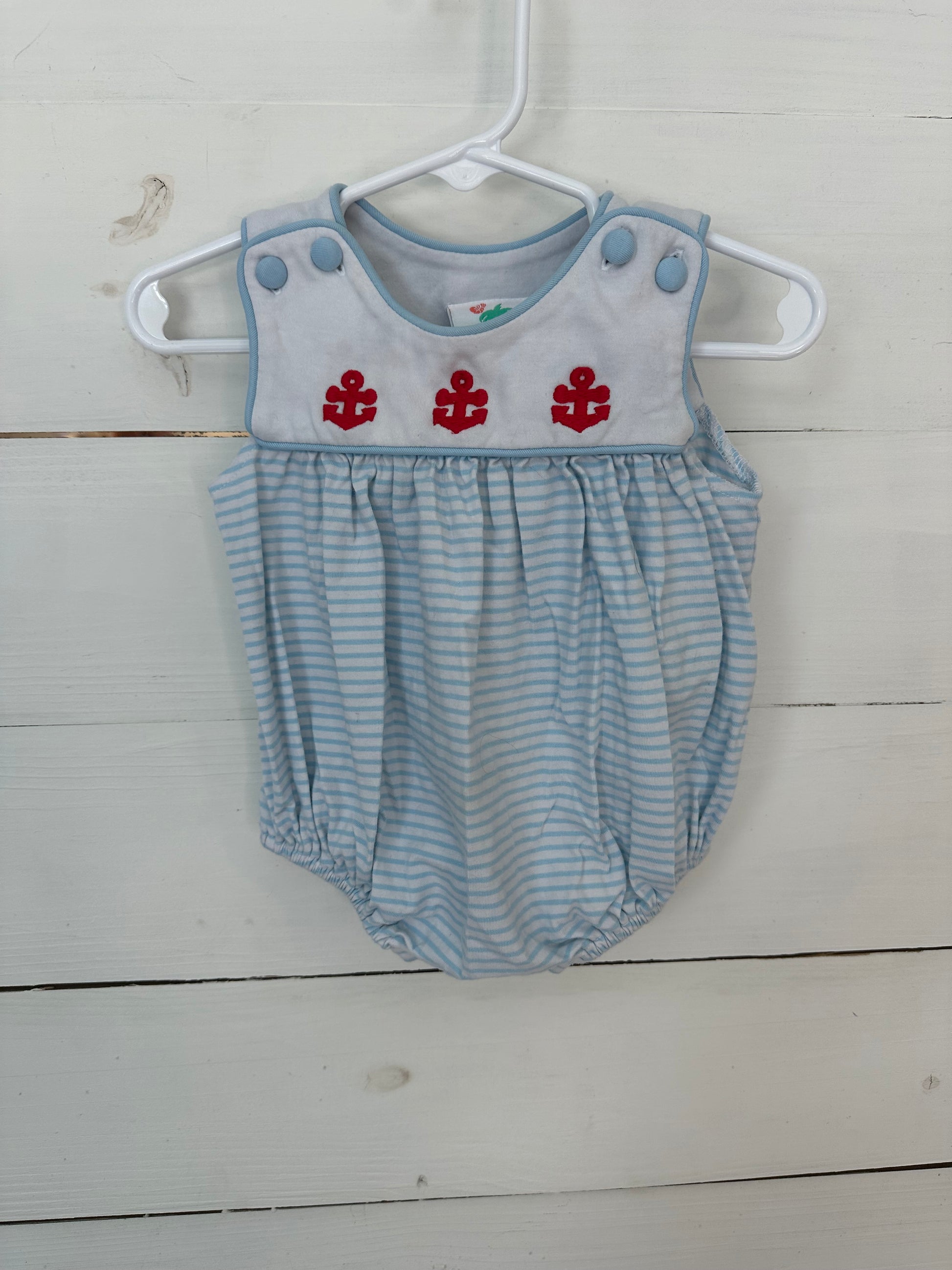 6M - Shrimp & Grits Blue Striped Bubble with Red Anchors