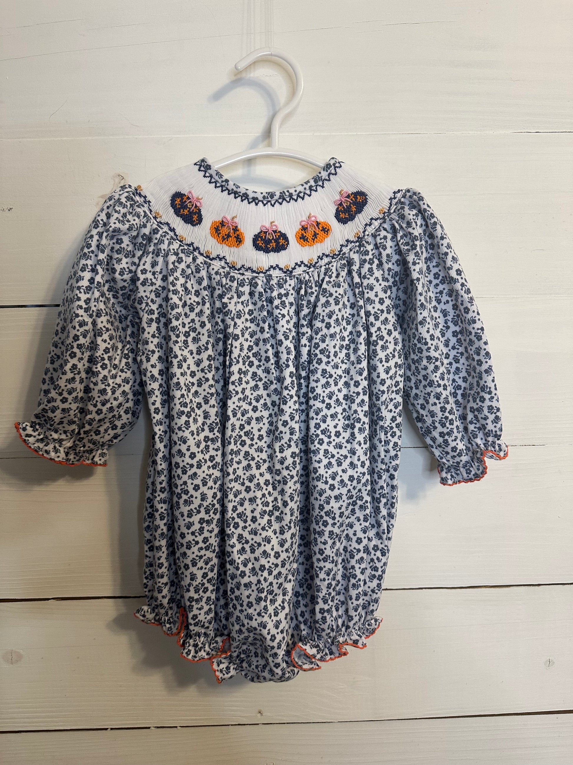 9M - Ruth & Ralph Smocked Bubble with Pumpkins, Bows, & Flowers