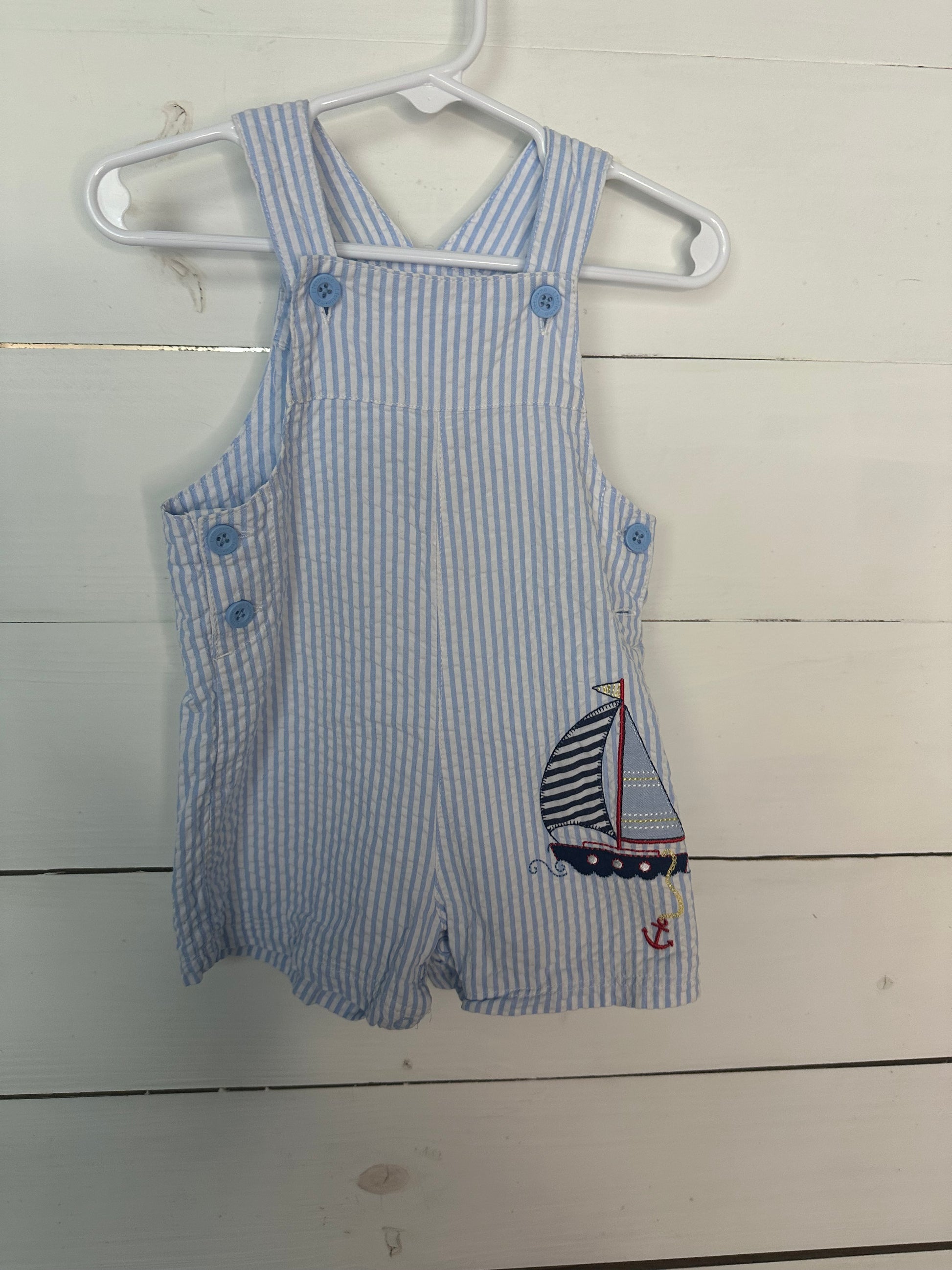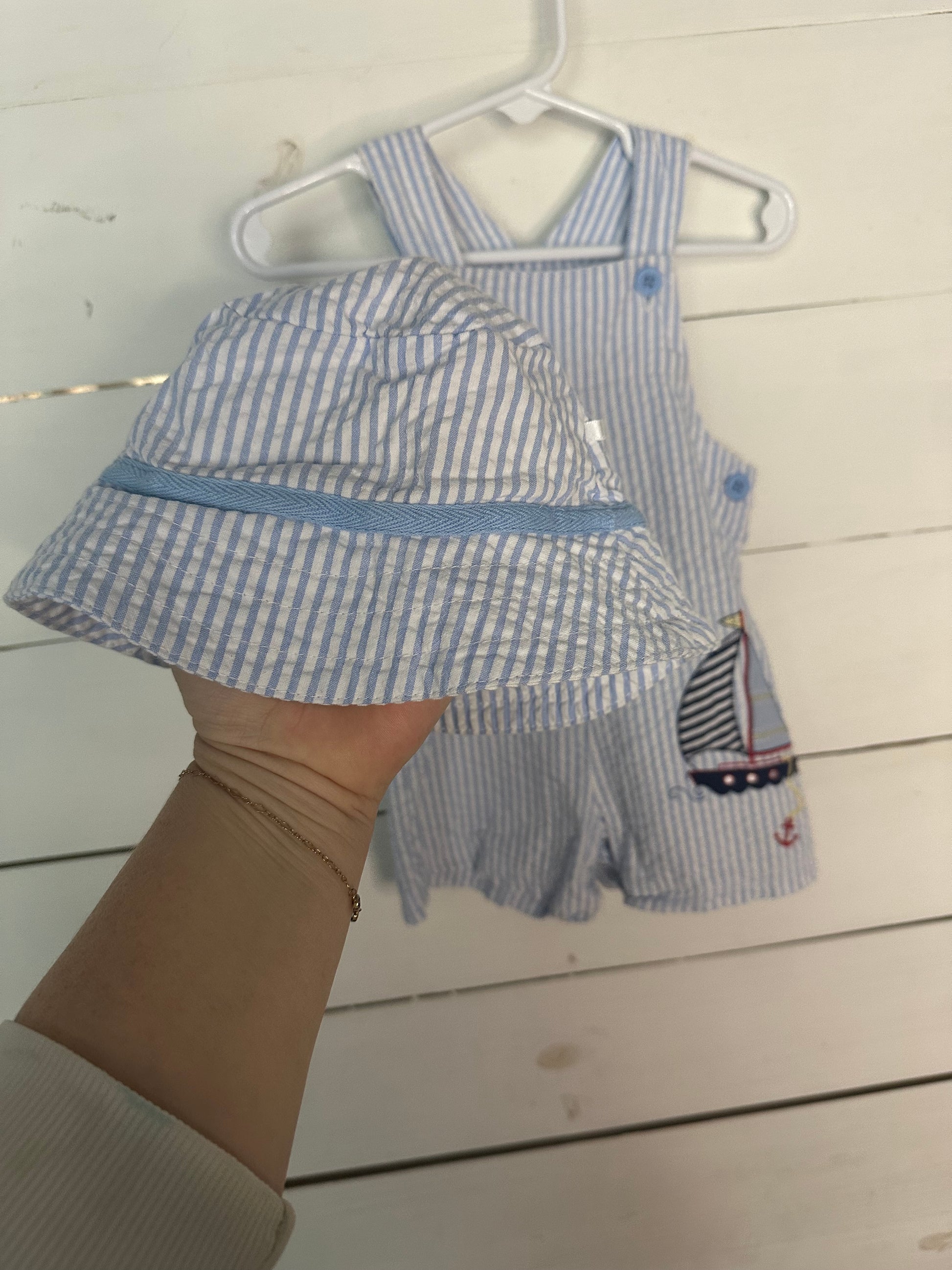 9M - Sail Boat Seersucker Jon Jon with matching hat