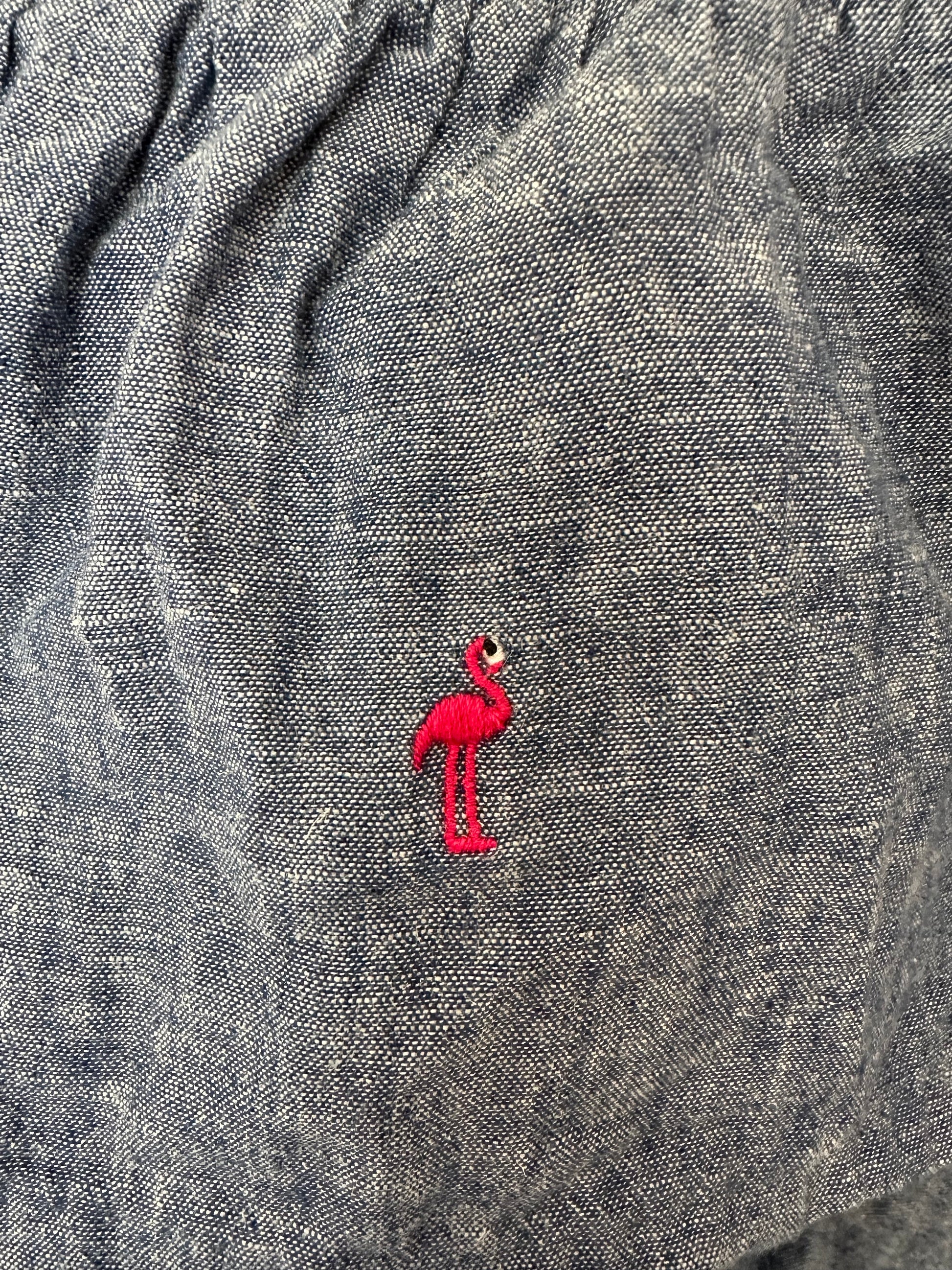 Janie and Jack Denim Bubble with skirt and embroidered flamingos
