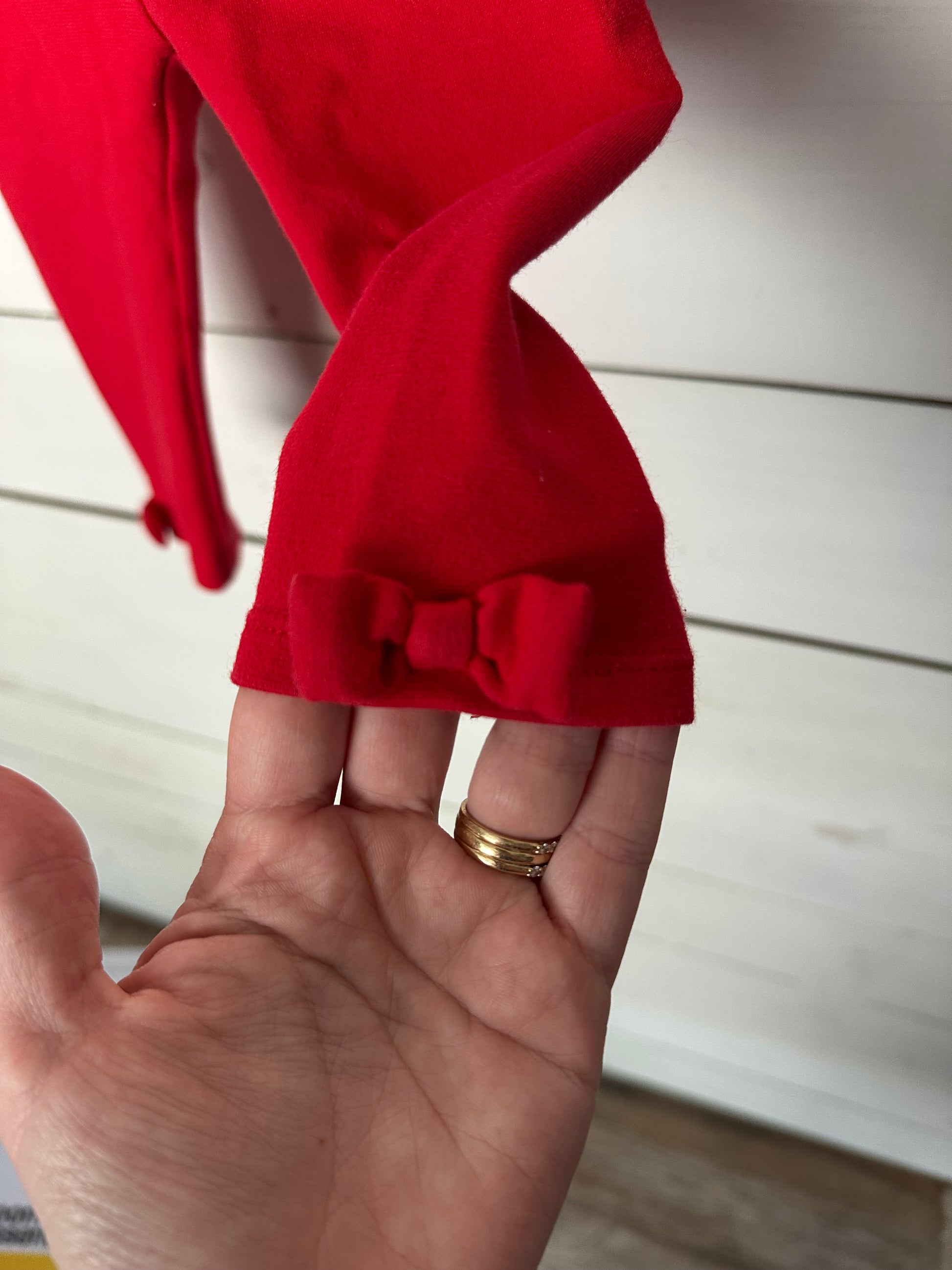 Janie & Jack pink collared onesie with flowers & red leggings with bows at the bottom
