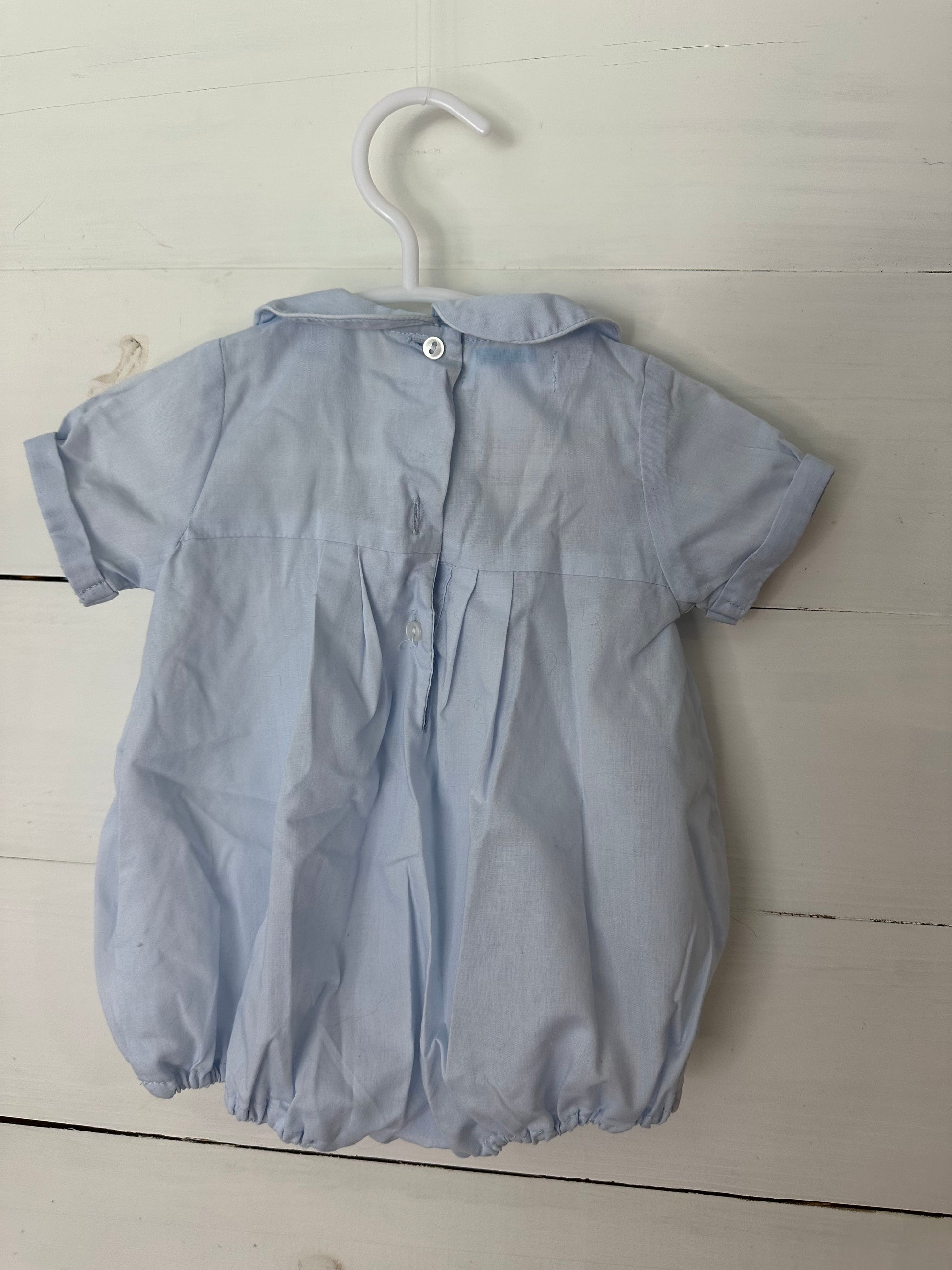 Newborn - Feltman Brothers Bubble with Embroidered Sail Boat - Missing a button on back - Still functional