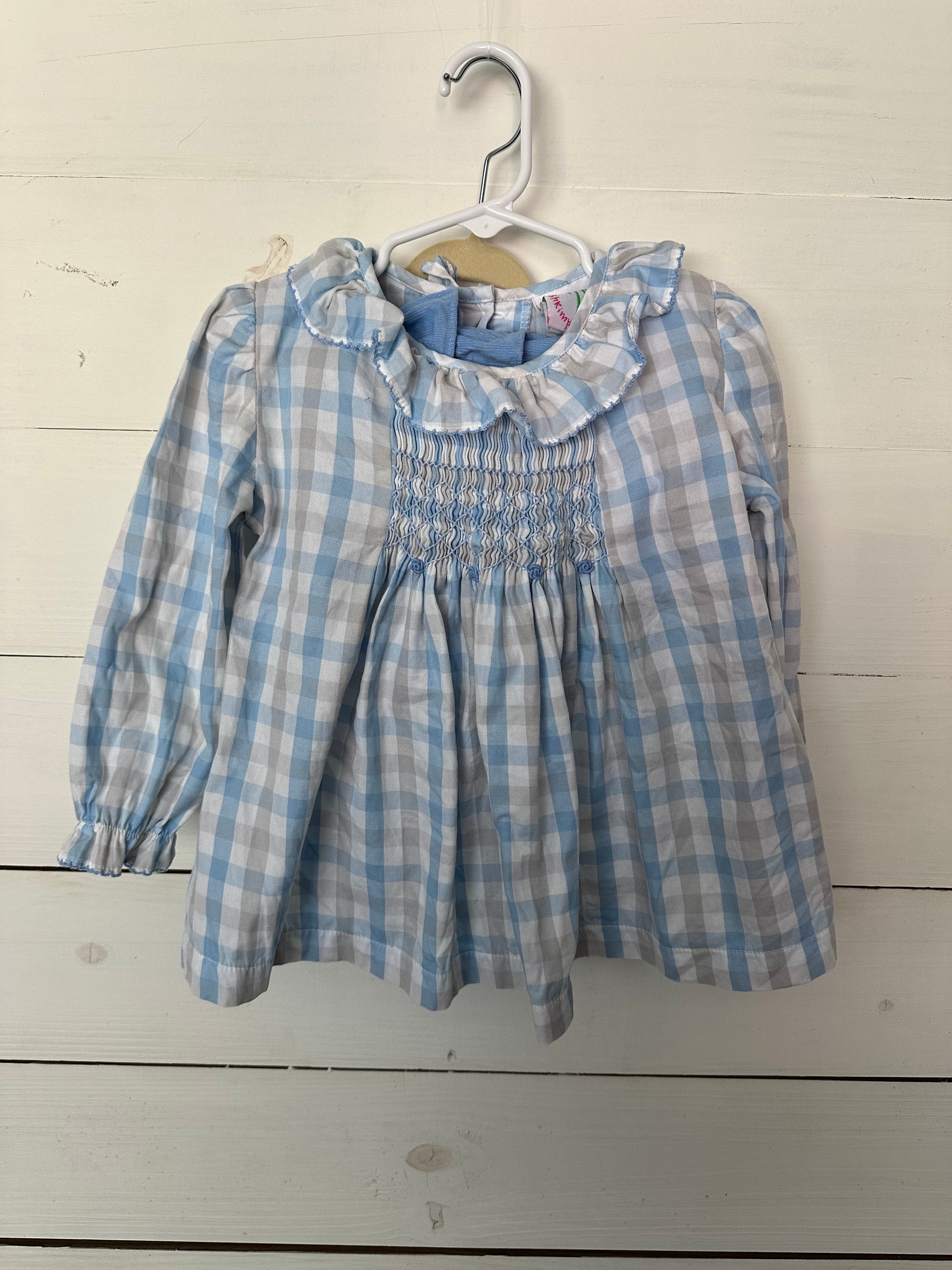 Shrimp and Grits Long sleeve shirt and bloomers blue and grey gingham