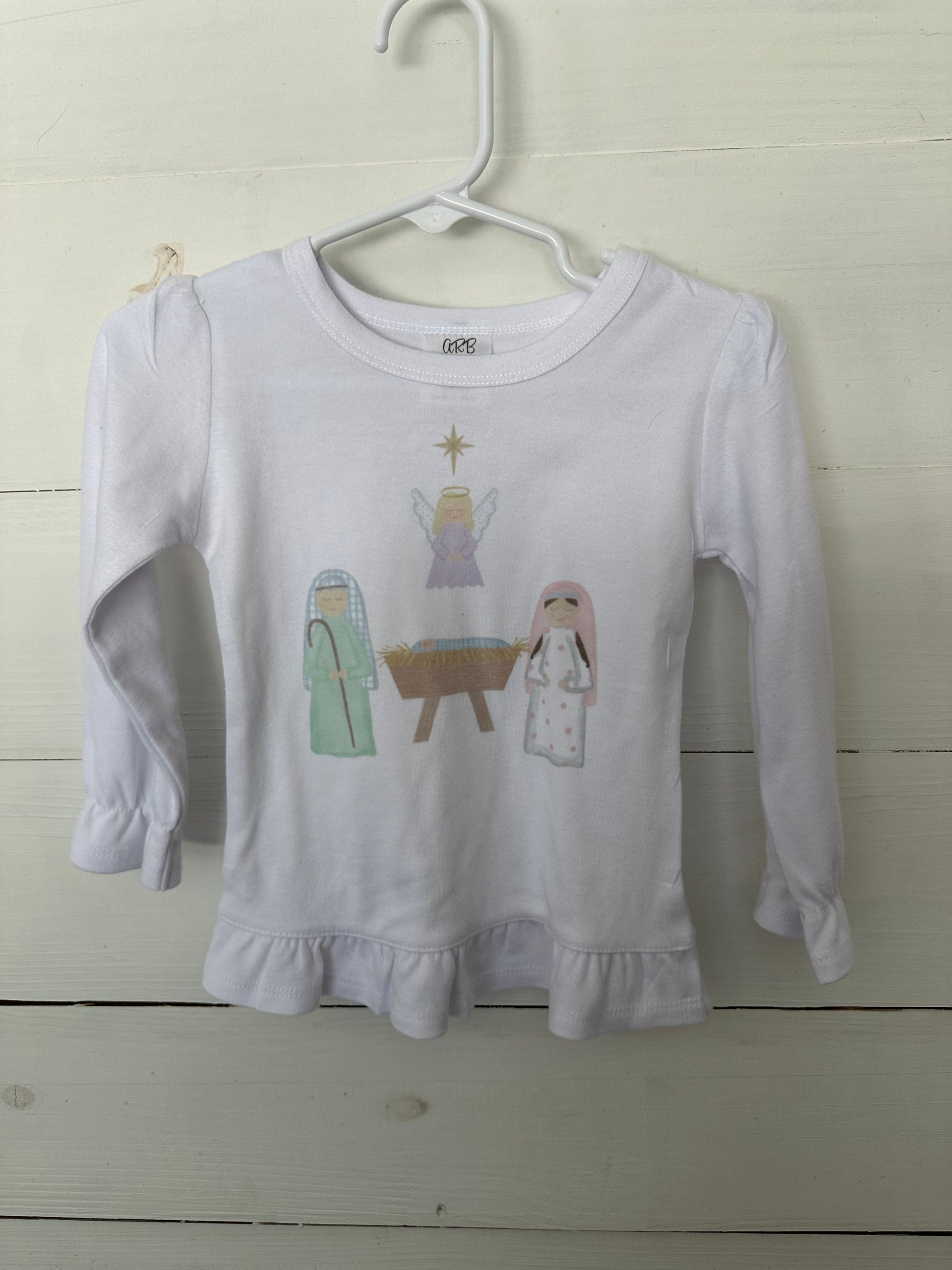 Sweet Nativity Scene Long Sleeve shirt with ruffled sleeves